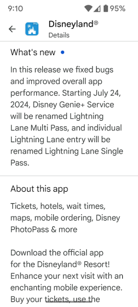The Disneyland App is getting an update, too! For now, the skip-the-line service is simply getting a name change on the West Coast. The advance selections that are coming to Disney World are not coming to Disneyland. Therefore, everything will work the same as Genie+ and the Individual Lightning Lane option. However, you’ll still need to update your Disneyland app. These updates are now available for this app.