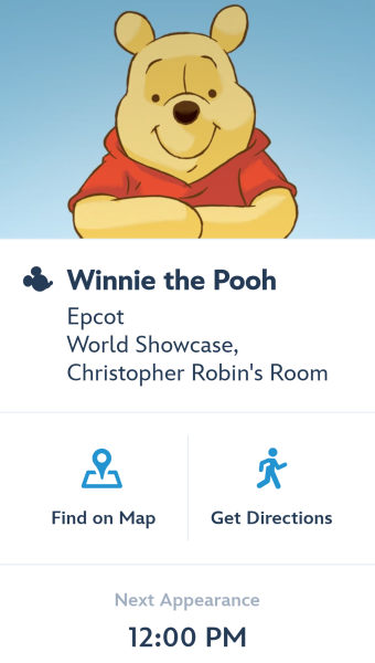 Note that if you look in the My Disney Experience app, you’ll only see that Pooh is listed at this meet-and-greet location, so Piglet might not be there regularly like Pooh, or this could have been even a one-time occurrence. We occasionally see rare characters pop up around the International Gateway entrance of EPCOT, too.