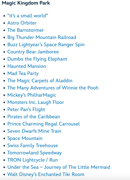 Here’s the full list of rides Disney World has listed on its website that will be open during Extended Evening Hours.