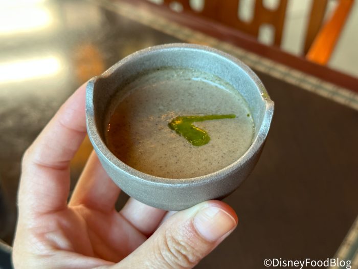 We started things off by sipping the Wild Mushroom Bisque. It’s made with chive oil and pureed into a thicker soup consistency. It tastes almost peppery, and the earthy mushroom flavor is subtle (this might be a good way to stealthily get your kids treated to some mushrooms while you’re here).