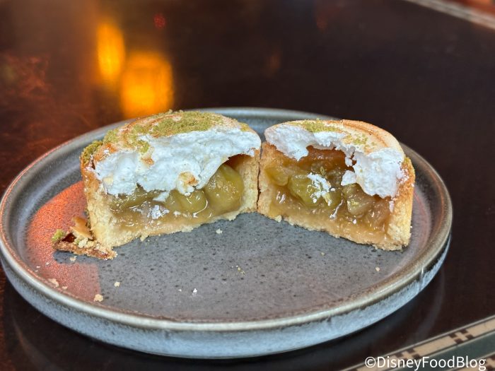It features a toasted meringue top that’s crunchy and soft underneath (like whipped egg whites). The gooseberries tasted like a small cooked sour green cherry but also had the consistency of a cooked apple. The pie crust didn’t have much flavor but did crumble nicely when cut.