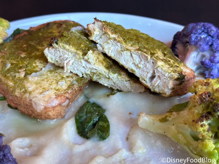 The chicken was cooked more like a chicken patty since it’s a plant-based option and less like an actual chicken. It was fine to pass as a chicken, but you really needed to be able to appreciate a drier chicken patty over envisioning this meal as a juicy piece of chicken. We realize this comes with the territory of being a plant-based option instead of true chicken, but overall, it didn’t wow us.