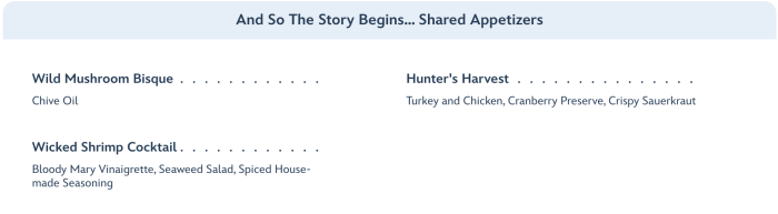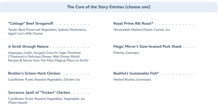 From there, the meal moves to the core of the story entrees (where you’ll choose one of the choices offered).