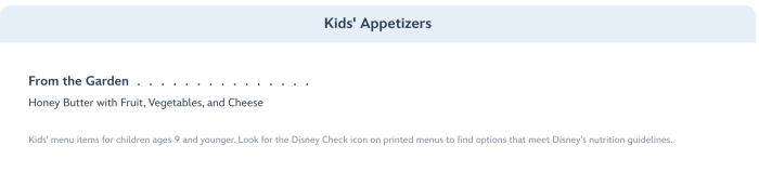 The children’s menu will also offer a selection of appetizers…