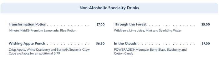 Of course, there are a few options available to enhance your meal, like non-alcoholic specialty drink selections for an additional fee…