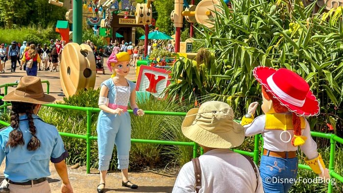 We were wandering around Hollywood Studios on July 19th when we headed into Toy Story Land. Here you can occasionally run into Woody and Jessie, but there’s one Toy Story character that we almost never see that happened to be there that day. Bo Peep!!