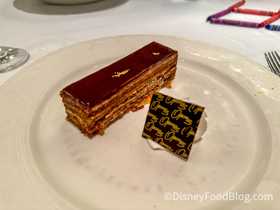 Now for the moment you’ve all been waiting for — dessert! We kicked things off with the Grand Marnier Souffle, and we’re so happy we did. Speaking of souffles, they’re quite a challenge for most to make at home and it doesn’t appear on many restaurant menus, which is why we prioritize getting a souffle on a cruise when possible because of its uniqueness. Now, this one wasn’t the greatest ever (a bit eggy), but overall, we’re still happy with this pick. The creme anglaise and the citrusy Grand Marnier flavors were definite favorites of ours.