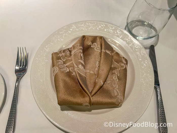 Let’s set the scene: We hopped on a cruise aboard the Disney Magic recently. Now, its three dining rooms are Animator’s Palate (on deck four aft), Lumiere’s (in the lobby atrium on deck three), and Rapunzel’s Royal Table (on deck three aft). They’re all uniquely themed and have menus that match the individual vibes to the T. For this post, we’re focusing on our time at Lumiere’s.