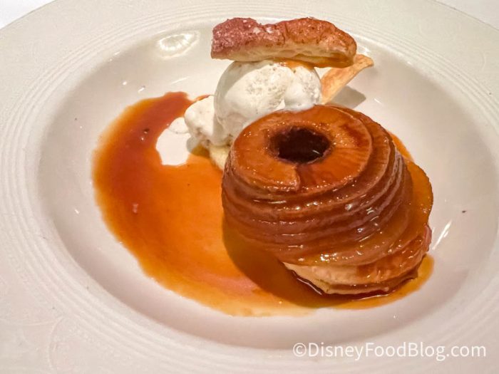 Last but certainly not least, we had the Apple Tart Tatin. This one is almost exactly what you’d expect — a caramelized baked apple with vanilla ice cream. We loved it!