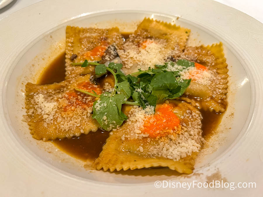For our last entree, we ordered from the vegetarian side of the menu. We wanted to give the Wild Mushroom-Stuffed Pasta a try. While this one had a lot of mushrooms, it really lacked any overall flavor or other interesting qualities. If only this one had been creamy instead of brothy it would have rated much higher in our books.