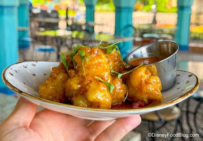 We’ve had these before, but we think they’re even better now. The fries are so flavorful, but when you dip them in the sauce, you get a nice intensity (and, yes, heat) that isn’t easily found in Disney World. This place IS called SPICE Road Table, after all. We will warn you that the spiciness could be a bit much for some folks, though. But we like it SPICY.