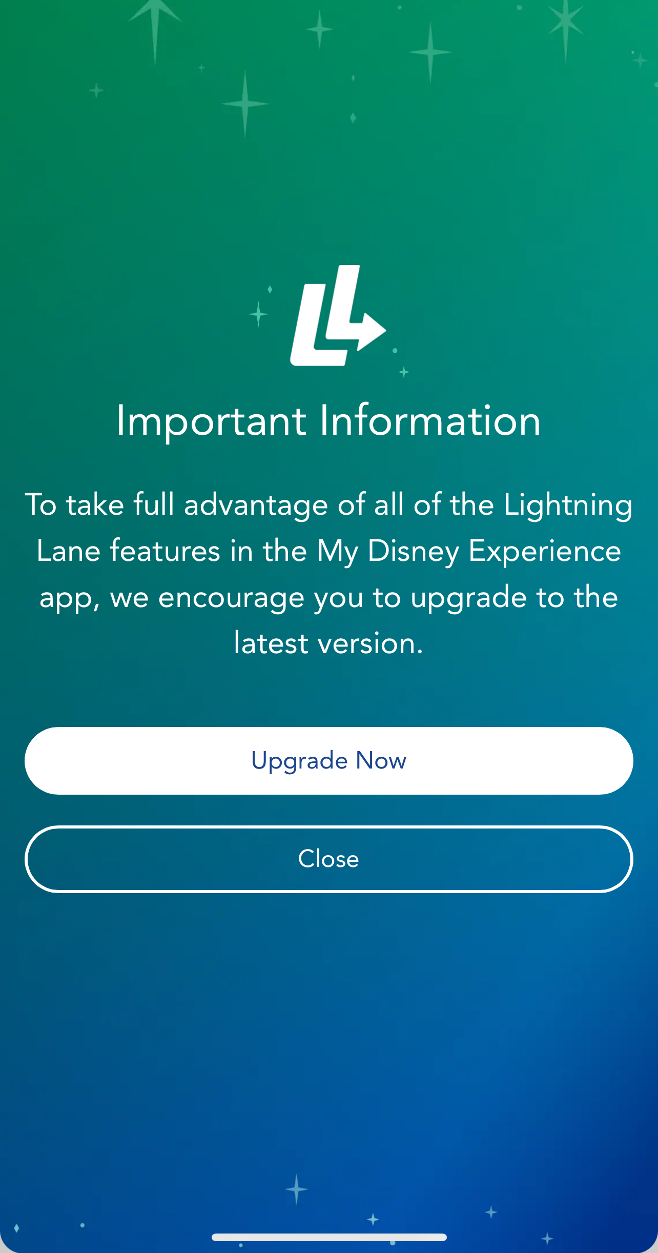 Too bad if you have a slightly older phone – you can’t update the app. you need a higher operating system and therefore cannot use the new lightning lane. Hmmm