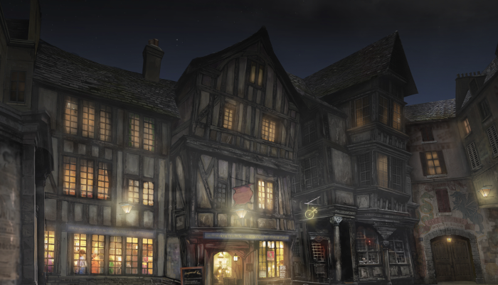 - Le Gobelet Noir – In the shadowy corners of Place Cachée is a mysterious timeworn auberge, where international Dark witches and wizards gather to escape the prying eyes of the Paris Ministry and have a hearty meal over hushed conversation. Menu offerings include starters such as soups and salads as well as a variety of entrées and desserts.