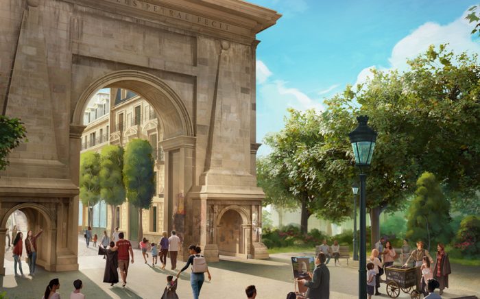 Universal shared that in this land, “guests will first journey from a Muggle park in Paris into the breathtaking spectacle of 1920’s Place Cachée – a hidden, bustling shopping district in wizarding Paris lined with Haussmannian buildings, shops, sidewalk cafés, and historic Parisian domes rising in the distance.”