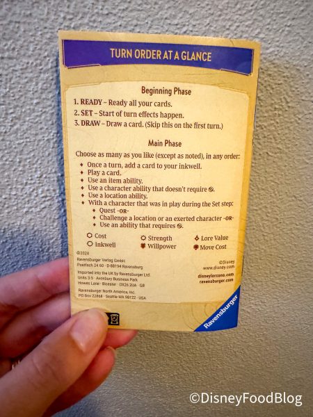 - Ready — Ready your exerted cards by turning them upright. (Exerted cards were used the previous turn which means they end up sideways.)
