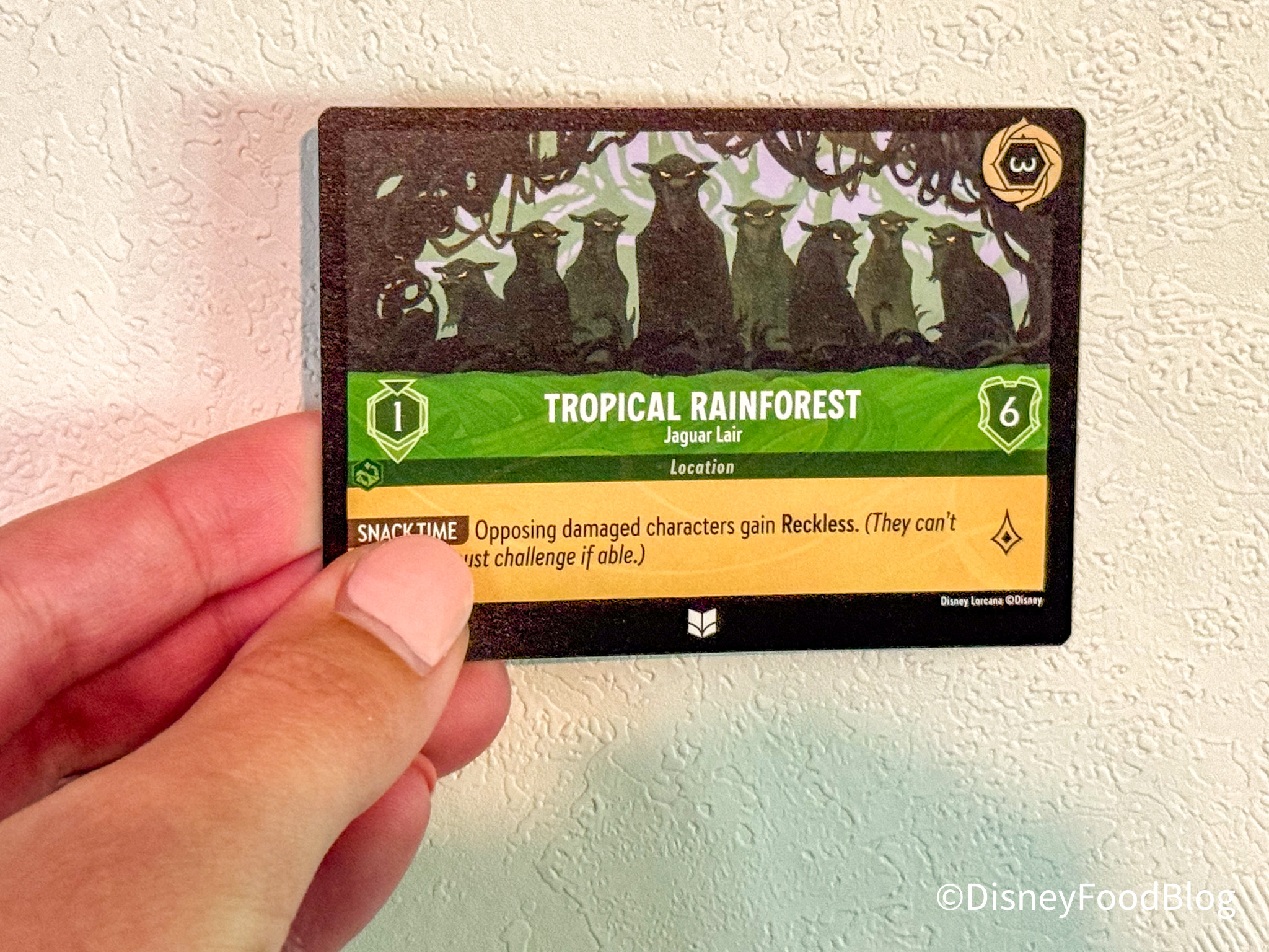 The new location in the Steel and Emerald deck is The Rainforest! The ability associated with this new location is interesting — “Opposing damaged characters gain Reckless.” This means that your opponent’s damaged characters will not be able to quest, and they must challenge if they are able.