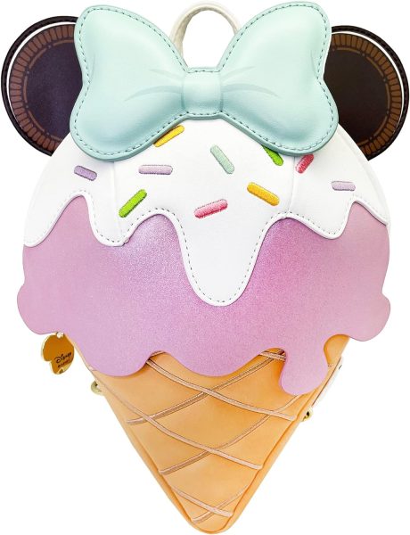 Admittedly, this one ended up in our carts as soon as it was released. Seriously, how could you resist the Loungefly x LASR Minnie Ice Cream Cone Loungefly Backpack?! This one is special because it’s actually SHAPED like a cone, and you can’t miss the sandwich cookie Minnie ears on top. This has to be a favorite Loungefly of ours!