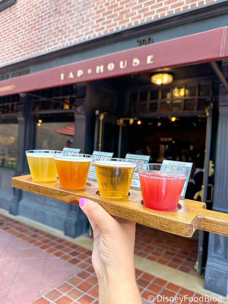 If you’re someone who misses the old days of Hollywood Studios too — back when it was MGM Studios instead of DHS — then you’ll probably appreciate (and be saddened by) THIS little Easter Egg. At Baseline Taphouse off Grand Avenue, you can order beer, wine, and small bites while chillin’ outside, people-watching the Hollywood Studios crowds from a safe distance.