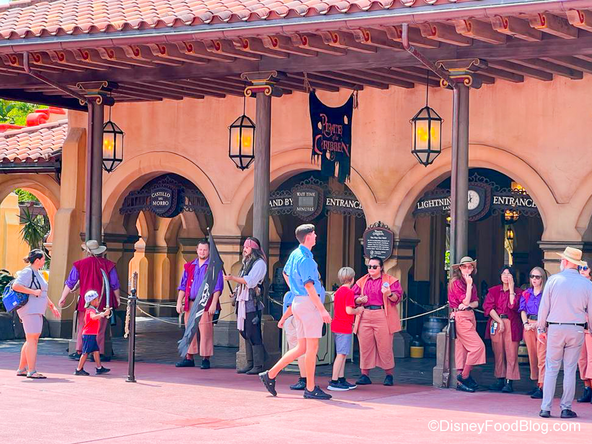 As we were saying, if you’re heading to the Magic Kingdom and you’re just stoked about getting on the Pirates of the Caribbean, we’ve got to talk about the queue right at the entrance of the ride and specifically what NOT to do while you’re there!
