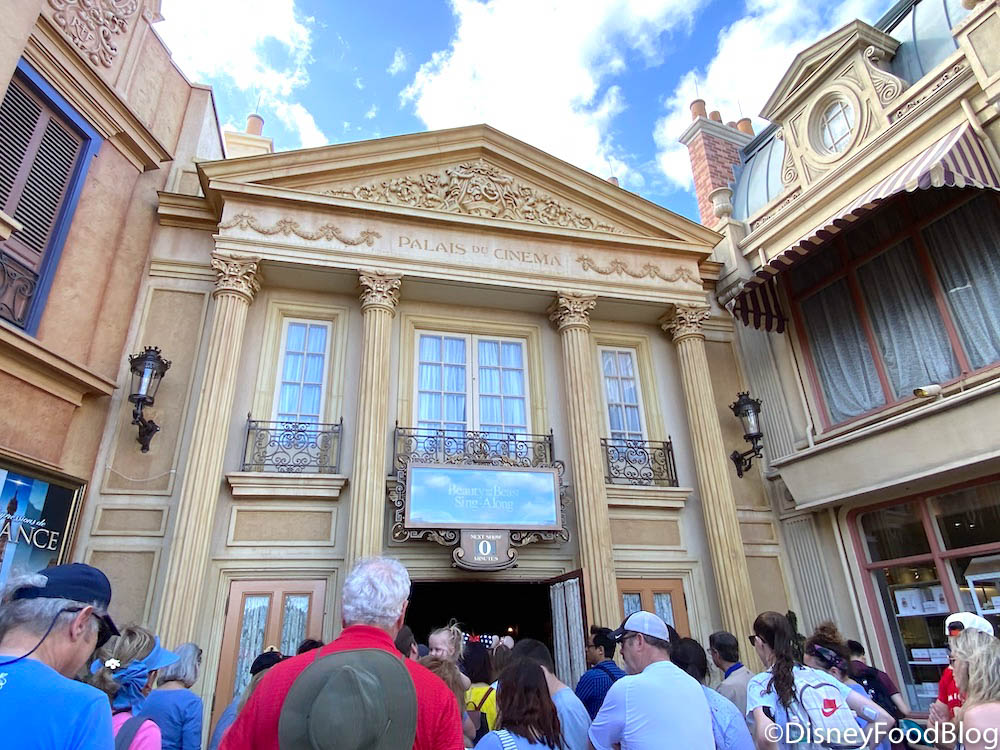 There’s a double feature happening at the Palais du Cinema inside the France Pavilion! In the middle of the day, you can come to this theater to watch the Beauty and the Beast sing-a-long (which retells the “Tale as old as Time” from LeFou’s perspective, strangely enough).