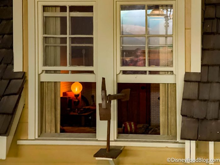 Upstairs in that farmhouse is a bedroom designed to look like the very one from Walt Disney’s childhood home. Upon further inspection, you’ll notice a lamp. Just like Walt’s Disneyland apartment, the lamp is always left on in this room in honor of his memory. It’s kinda hard to see all this detail from down below on the boat, but you can get a much better view of it when you dine at the Garden Grill restaurant, located on the second floor.