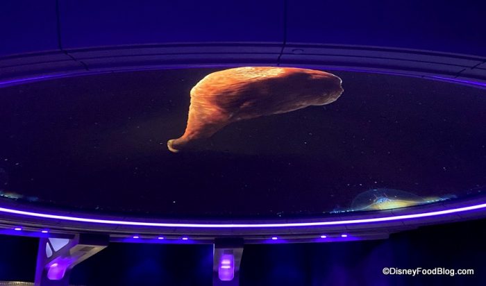 In order to see THIS Guardians of the Galaxy: Cosmic Rewind secret, you’re gonna have to enter into the queue and LOOK UP at the exact right time. As the supercomputer strives to learn more about Terran (Earth) culture in the Galaxarium, it questions the fascination humans have with the turkey leg.