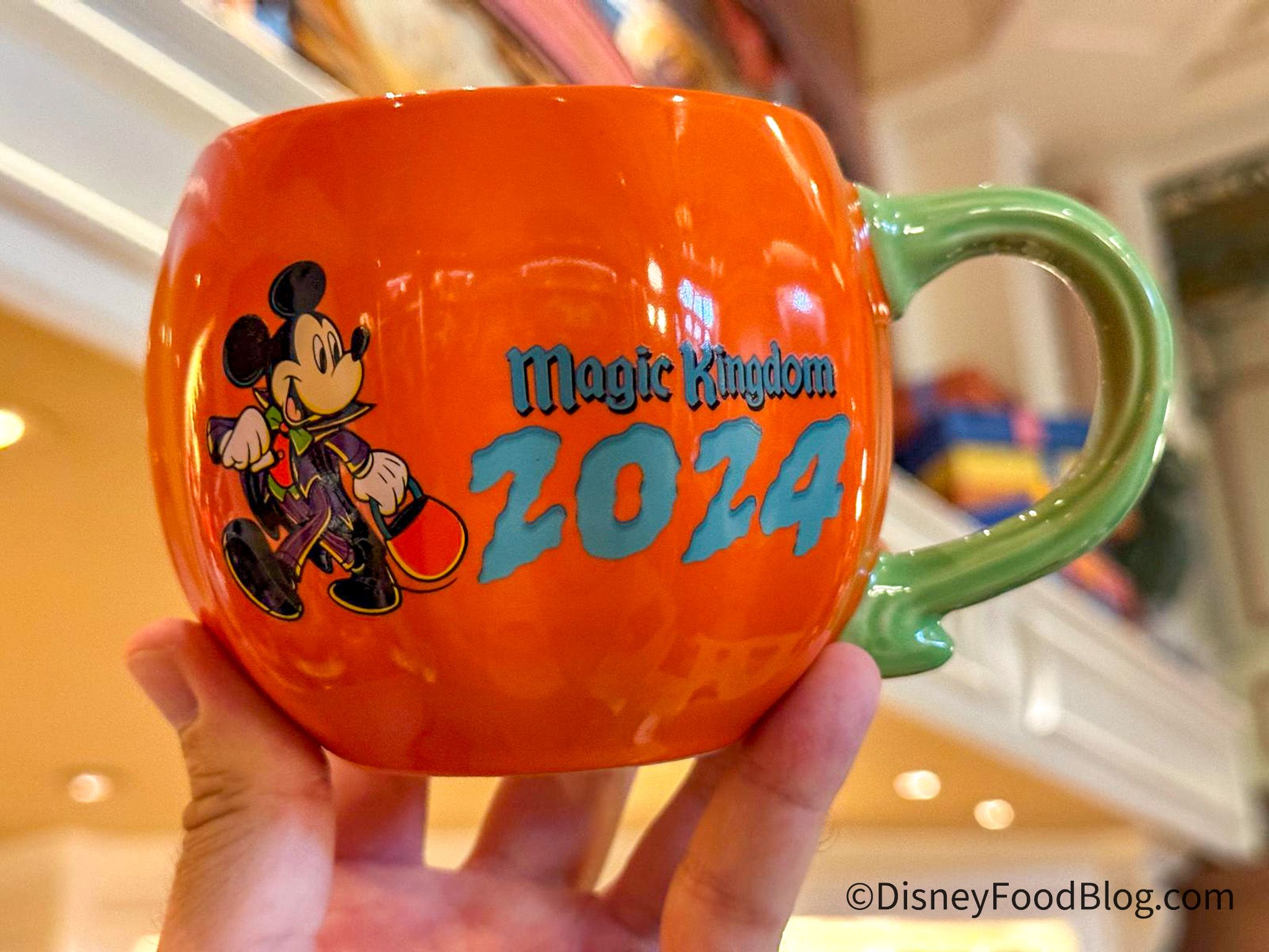 We also spotted a party mug shaped like a pumpkin! It’s so adorable and features Mickey Mouse trick-or-treating.