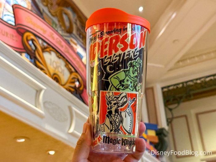 The Sanderson Sisters are especially popular during the Halloween party. There’s a new tumbler featuring the three witches!