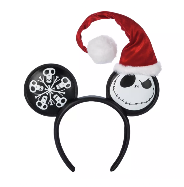 We are absolutely OBSESSED with these new Santa Jack Skellington Ears! They feature Jack’s iconic smile on one ear’s side, with skulls and bones on the other, while the other side features Jack’s open-mouth expression and more skulls and bones.