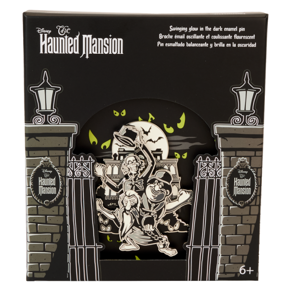 The final item of the new Haunted Mansion collection is this Haunted Mansion Hitchhiking Ghosts Collector Box Sliding Pin. This is a limited-edition item and only 2,000 will be sold. It features a shiny enamel pin with a window display collector’s box. The pins swings and glows in the dark.