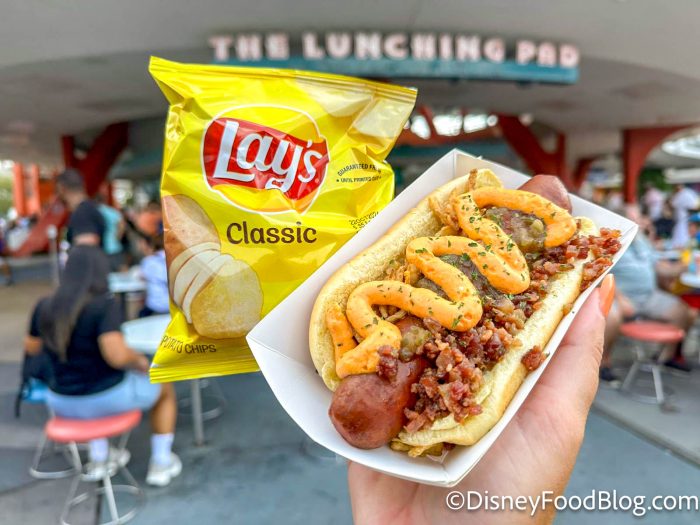 For $14.79 you get an all-beef hot dog topped with sriracha cream cheese, crispy onions, bacon, and Hades relish. It’s quite the creation! It comes with a bag of chips on the side.