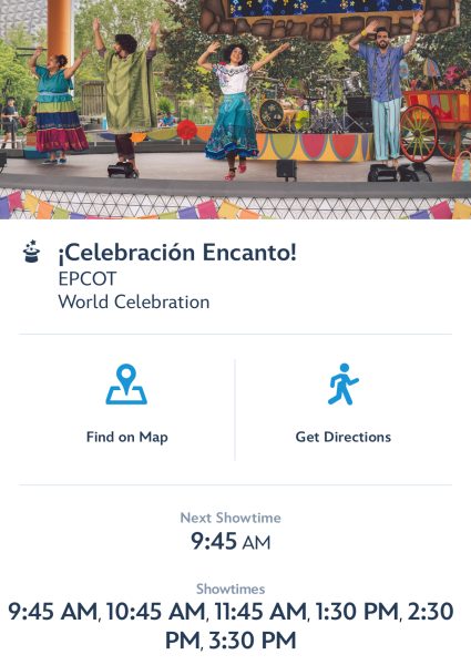 OK, that brings us back to EPCOT. Now that Hispanic & Latin American Heritage Month is coming soon, Disney confirmed that ¡Celebración Encanto! will be extended to continue the celebration! The show runs multiple times each day, but make sure to check the My Disney Experience app for the full list of showtimes.