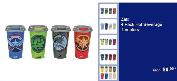 Keep your hot beverages hot with these fun tumblers — you get four in a pack for just under $7 — say what? These tumblers will also let you show off your love for Marvel, Mickey and Minnie, Nightmare Before Christmas, and more!