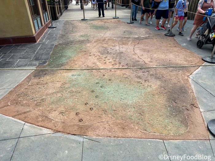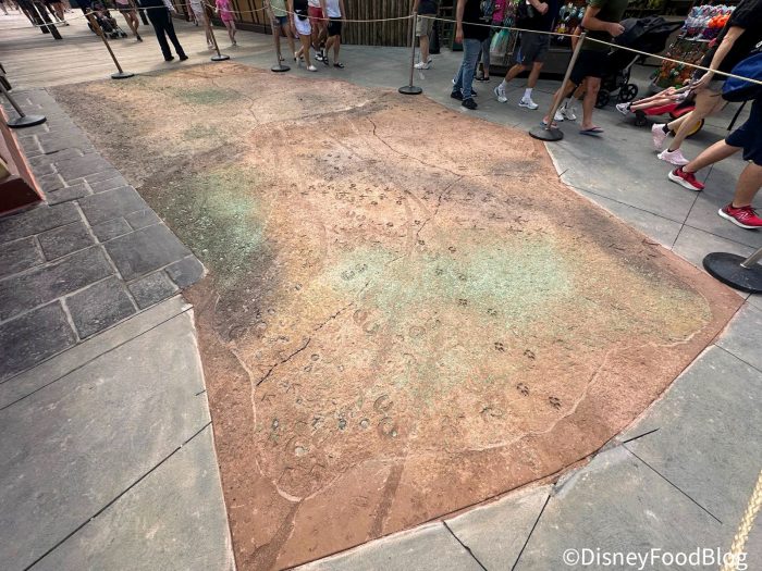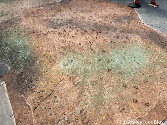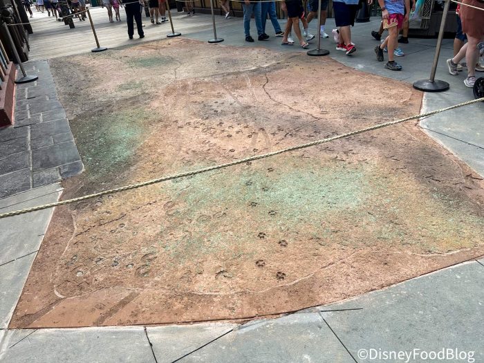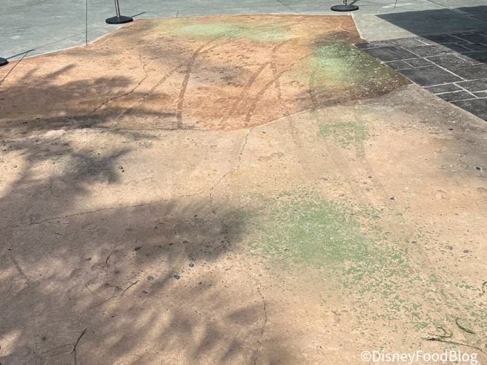 Its actually quite a large section of concrete just outside of the Club 33 entrance and before you make your way out to the line for Sunshine Tree Terrace if you’re passing through the land’s entrance sign. When we stopped to ask a Cast Member about the change they weren’t certain why it was added or how much more we could anticipate popping up around the land at the time. We’re left with so many questions now!
