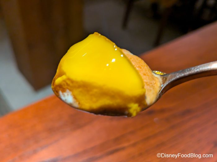 We did it! We made it to the dessert course. Here, you’re given a choice of homemade green tea cake, vanilla ice cream, whipped, blackstrap molasses, mint or Japanese pumpkin blancmange with blackstrap molasses, whipped, mint or Florida orange jelly with strawberry sorbet, whipped mint. We went with the pumpkin blancmange.
