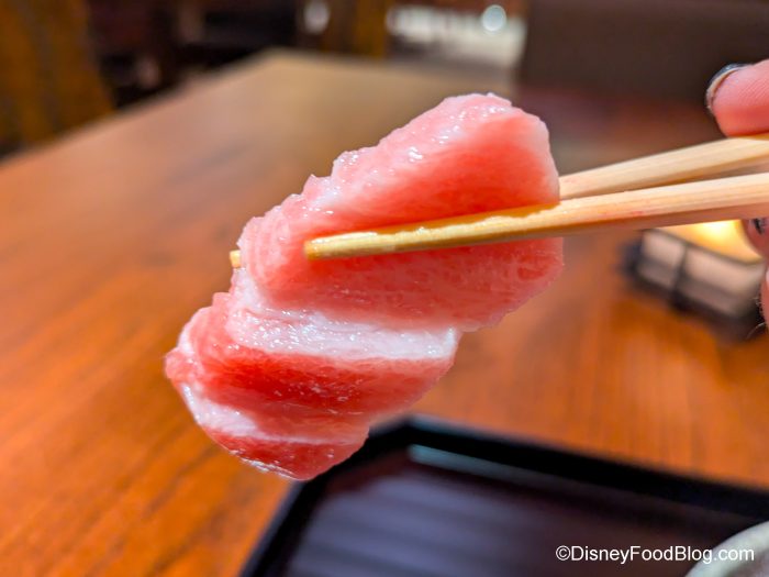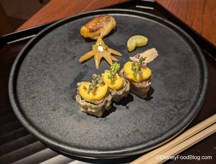 We once spent $300 on a sushi boat in EPCOT, and we have ZERO regrets. We’ve also dined at Victoria & Albert’s at Disney’s Grand Floridian Resort & Spa, which is the FANCIEST restaurant in all of Disney World. Again, that was a case of YOLO. We’ve done the tasting menu at Monsieur Paul at EPCOT, and it honestly blew our minds. Well, we recently revisited another EPCOT favorite, Takumi-Tei, and this one set us back about $250, and it was worth every penny.