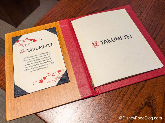 Takumi-Tei means “House of the Artisan” in Japanese, so inside, you’ll find five beautiful rooms, each inspired by a natural element: water, wood, earth, stone, or washi paper. We were seated in the wood room, which has some nods to the other elements in it. Each room is a beautiful ode to Japanese craftsmanship.