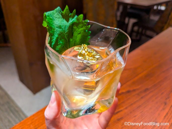 The Shochu is so delightfully heady and shines in the shrank as the main ingredient. The Shiso acts sort of like bitters and balances the drink’s flavor profile. It has the perfect amount of sweetness that makes it like a traditional Old-Fashioned, but with these elevated flavors. There’s an earthiness to it that reminds us of green tea. Even the crystal clear ice is amazing and melts in a beautiful way.