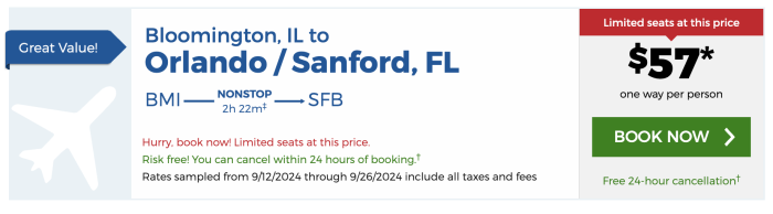 If you’re flying from Bloomington, IL, you can score flights for $57!