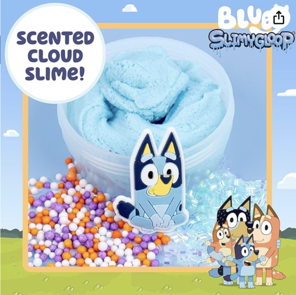 This bubblegum-scented slime comes with fun add-ins for experiments with new textures. Your kids will love playing with this Bluey-colored while you enjoy its mess-free fluffiness. It comes with a resealable container so when they’re done playing, they can keep it stored away safely.