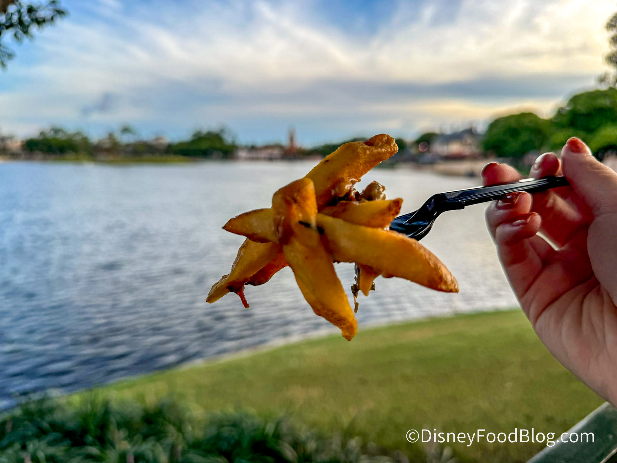 The relish adds a nice acidity to the dish that helps cut through how buttery and rich the rest of this poutine is. We’d eat this 100 times over! However, we recommend eating this later in the day and not when the park is at its hottest — this snack is best eaten when the weather is slightly cooler.