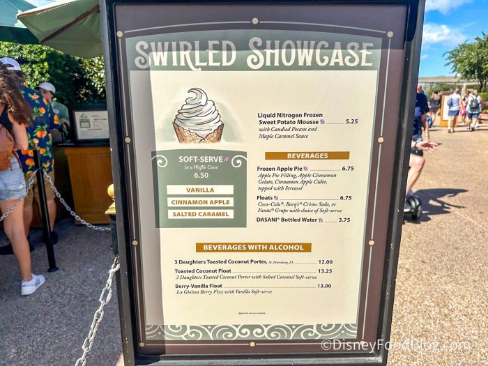 Swirled Showcase debuted at last year’s EPCOT Food and Wine Festival as a special 100th anniversary booth — and it’s stuck around for every EPCOT Festival since then!