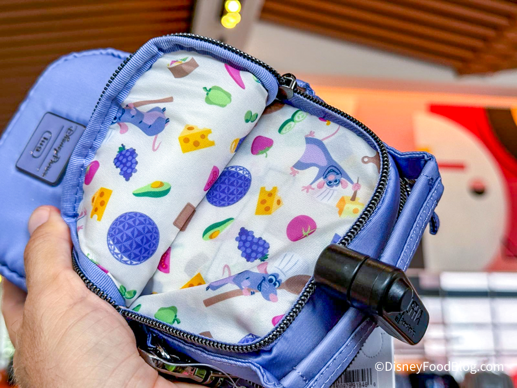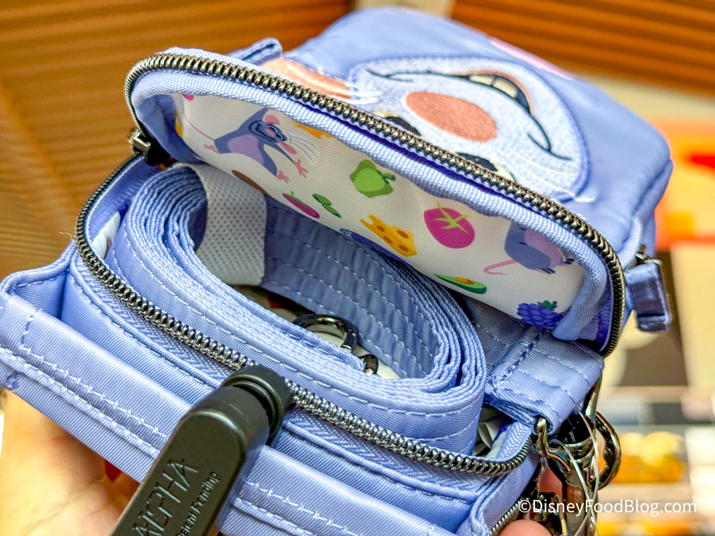 You’ll find an adorable Remy and EPCOT Food & Wine Festival pattern on the inside lining of the bag. This crossbody bag would make a great day bag for when you’re hanging out in EPCOT, right?