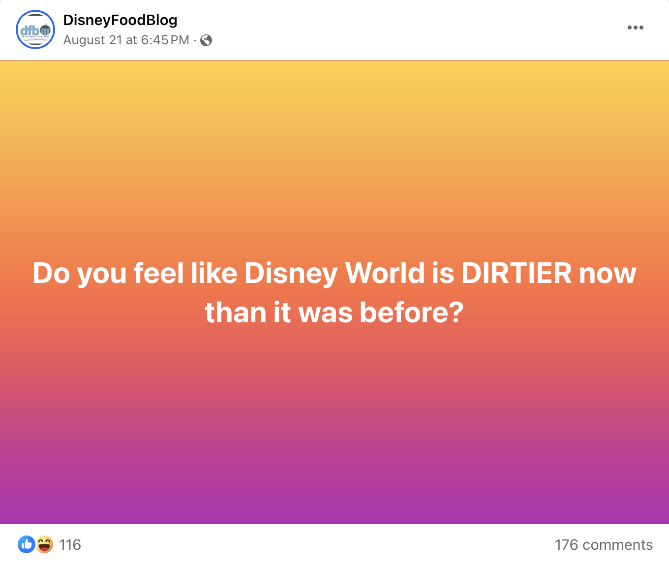 Those were just some of your thoughts on whether Disney World has become dirtier than it was before, and we want to hear more from you! Until then, keep it right here for all the latest Disney news! Also, follow us on Facebook to join in on the next discussion.