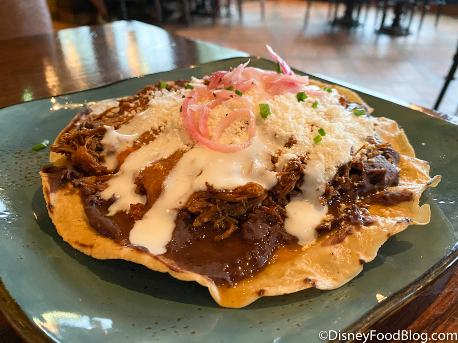 - ADDED: Tlacoyo con Carnitas — Fried masa topped with beans, pork carnitas, salsa verde, cotija cheese and pickled onions for $15