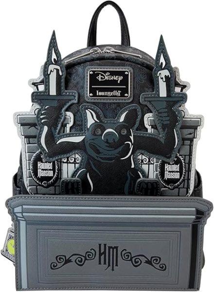 Charming and creepy and not to mention fashionable, this Loungefly Haunted Mansion mini backpack features a gargoyle in front of the Gracey Manor gates. The front pocket is designed as a tomb and the bag also has side pockets for more storage options. While this backpack features a glow-in-the-dark design, the gargoyle’s eyes also light up!
