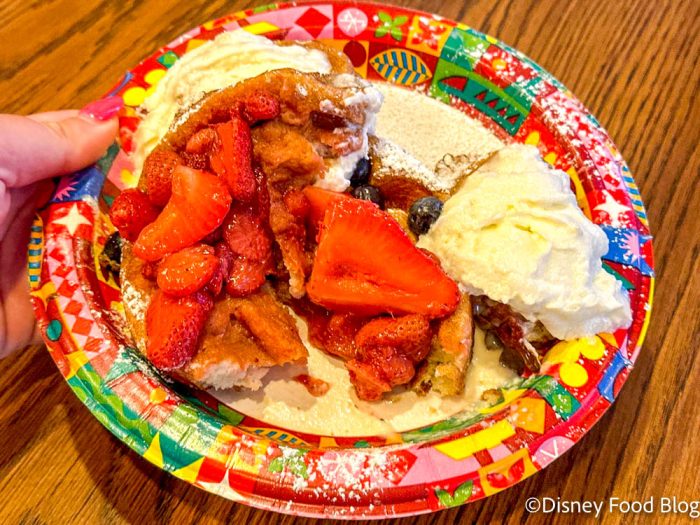 The old waffles were soft and crispy. The new waffles are almost pancake-like and once all the toppings get added, they get all soggy and gross. We’re not sure why Disney thought this was a good idea, but we’re still begging for the old waffles to come back (hey, it worked with the Hush Puppies at Columbia Harbour House, so we have hope).