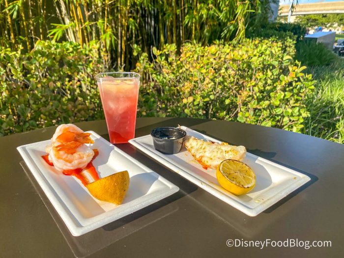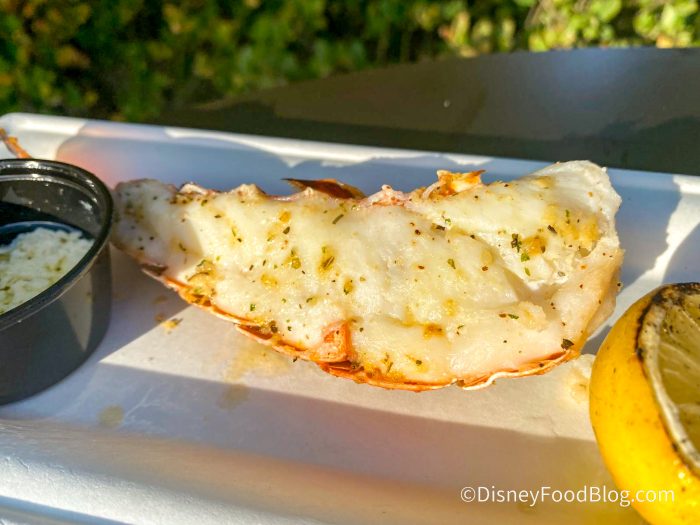 Some people may question eating fresh seafood at a theme park and in particular fresh LOBSTER at a theme park quick service location, and we were right there with you really wondering if these options would be any good. Who would see lobster on a menu at a theme park and think, “Hmm…yes I’m going to get the lobster tail from a kiosk window.”?