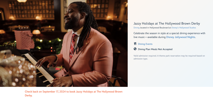 If you’re interested in booking a Jazzy Holidays reservation, make sure to secure your spot as soon as you can! Disney didn’t share how many reservations will be available each night. We’ll be sure to share the 2024 menu as soon as it is released, too!