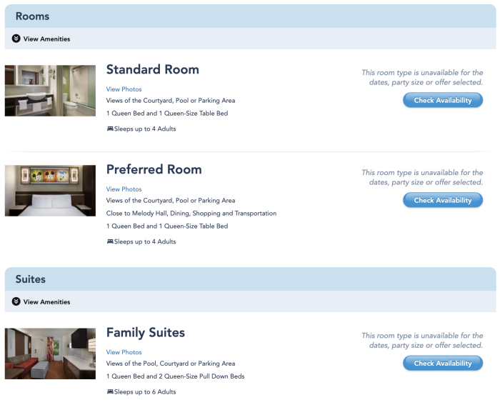 We clicked on that “Check Availability” button and got a pop-up window to allow us to change the dates of our trip. However, when we did that, it just reloaded back to a similar page where all the rooms said “Check Availability.” Well, that’s a bit annoying, right?